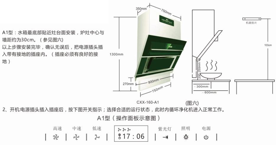 6、主機(jī)安裝完畢,后接上電源插座,試運(yùn)行機(jī)器,確認(rèn)機(jī)器的各功能是否正常。