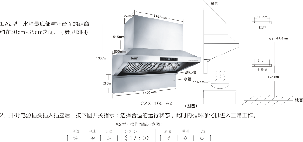 6、主機安裝完畢,后接上電源插座,試運行機器,確認(rèn)機器的各功能是否正常。