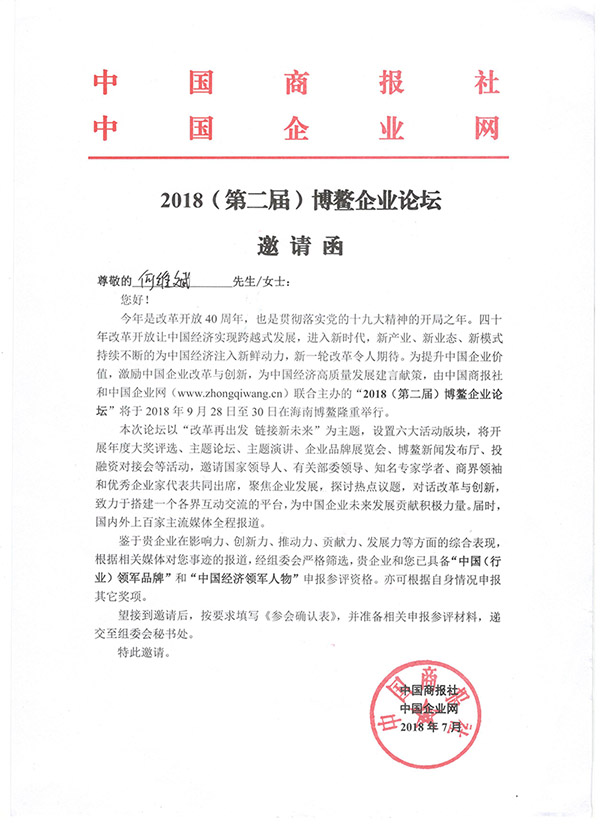 第2屆博鰲企業(yè)論壇邀請(qǐng)函