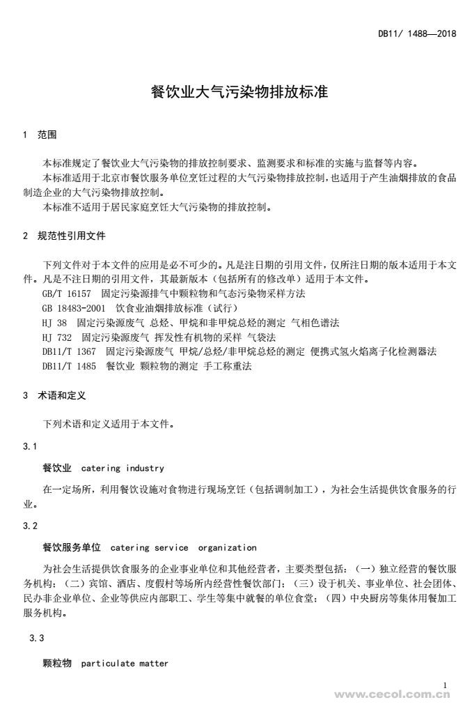 2019年北京《餐飲業(yè)大氣污染物排放標(biāo)準(zhǔn)》2019年1月1日起實(shí)施